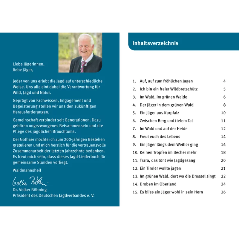 Für das ungezwungene Beisammensein in schönen Stunden und auch zum Nachlesen versammelt diese Broschüre einige der schönsten deutschsprachigen Jagd-Lieder. Die Gothaer ist seit langem DJV-Premium-Partner und wünscht Ihnen kräftiges Weidmannsheil !