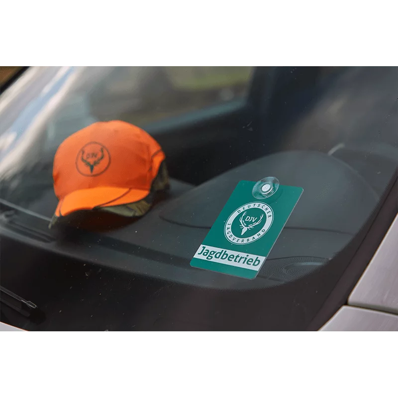 Autoschild 'Jagdschutz' mit stabilem Saugnapf und DJV-Logo.Aussagekräftiges DJV-Autoschild für die Autoinnenscheibe, zum abnehmen und wieder dran befestigen. einfache Anbringung durch mitgelieferte Saugnapfhalterung Material: 2mm starker, hitzebeständiger Kunststoff Maße: 9 x 12,5 cm Wir empfehlen trotz der Wärmebeständigkeit des Materials diese nicht an heißen Tagen im Auto der direkten Sonneneinstrahlung auszusetzen, da es im Auto auch schon mal zu Temperaturen über 70 Grad kommen kann. Daher geben wir darauf keine Gewährleistung.