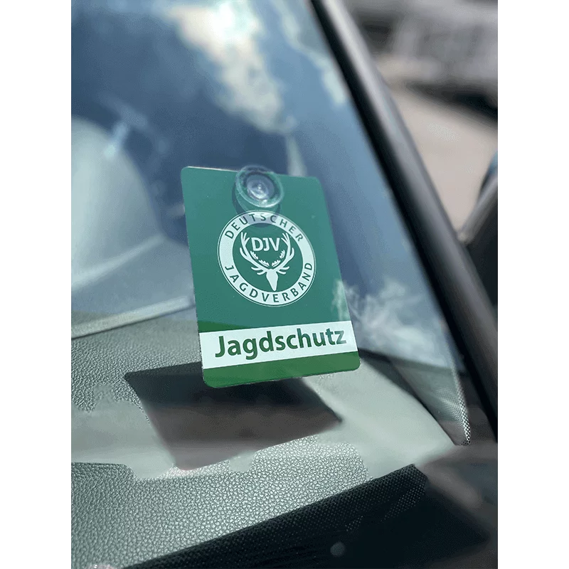 Das Autoschild 'Jagdschutz' besteht aus grün bedrucktem Aluminium, das für seine Langlebigkeit und Sonnenbeständigkeit bekannt ist. Die metallisch glänzende, digital gedruckte Schrift ist sehr gut sichtbar, selbst aus größerer Entfernung.