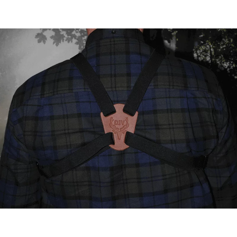 Das DJV-Fernglas-Tragesystem ermöglicht ein ermüdungsfreies Tragen von Ferngläsern. Ob auf der Pirsch, auf dem Ansitz oder bei einem Gang durch die Natur, mit diesem Tragesystem wird nicht nur die Nackenmuskulatur merklich entlastet, sondern das Fernglas ist auch blitzschnell griffbereit. Durch die spezielle Anordnung der verstellbaren Trageriemen pendelt das Fernglas beim Gehen nicht vor dem Brustkorb herum.