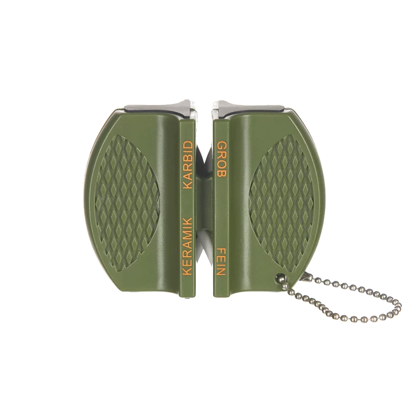 praktischer Messerschärfer der in jede Tasche passt. Schärft bis jetzt zuverlässig alle Messer. Besonders praktisch wenn man es mal eilig hat und das Messer nicht geschärft ist. Bei jedem Ansitz und bei jeder Drückjagd dabei. Habe ihn mir jetzt in Orange bestellt, so kann er im Gras nicht verloren gehen