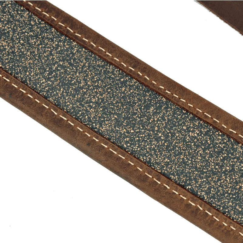 Die Rinde der Korkeiche Portugals und Spaniens wird seit fast 2000 Jahren zu Kork verarbeitet. Einem Naturprodukt, das sogar solch kostbare Güter wie Wein konserviert und zugleich beatmet. Seit einigen Jahren werden die Reste der Korkproduktion zu Granulat gemahlen und zu trittfesten Fußbodenbelägen, atmungsaktiven Schuheinlagen und sogar zu Treibriemen für Maschinen verarbeitet. Kork als Unterlage für Gewehrriemen ist nicht nur abriebfest und beständig gegen Feuchtigkeit sondern auch rutschfest.