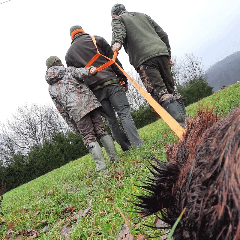 Somit kann auch schwereres Wild mit vereinten Kräften problemlos geborgen werden. Durch sein geringes Gewicht und das kleine Packmaß lässt er sich einfach transportieren und verstauen.