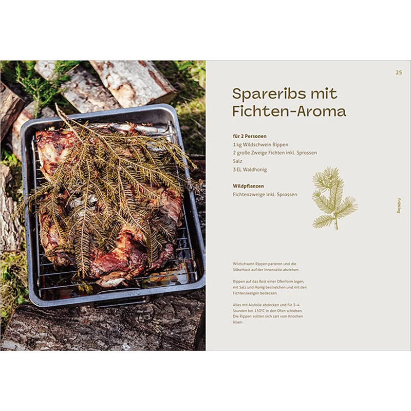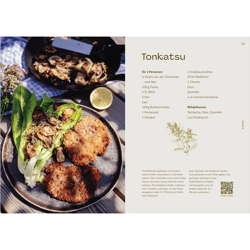 In kurzen und informativen Texten werden die Wildpflanzen beschrieben in ihrem Aussehen, ihrer Form, ihrem Geschmack und ihrer Anwendungsbereiche. Darauf folgend werden wahnsinnig leckere Rezepte angegeben, die die Wildpflanzen mit aufnehmen. Von köstlichem Geschnetzelten aus der Rehkeule bis hin zu modernen Gerichten wie Chicken of the Woods aus Schwefelporling ist für jeden Geschmack etwas dabei. Bei ausgewählten Rezepten gibt es QR-Codes, die zu Kochvideos vom Youtube-Chanell Wild auf Wild vom Deutschen Jagdverband verlinken.