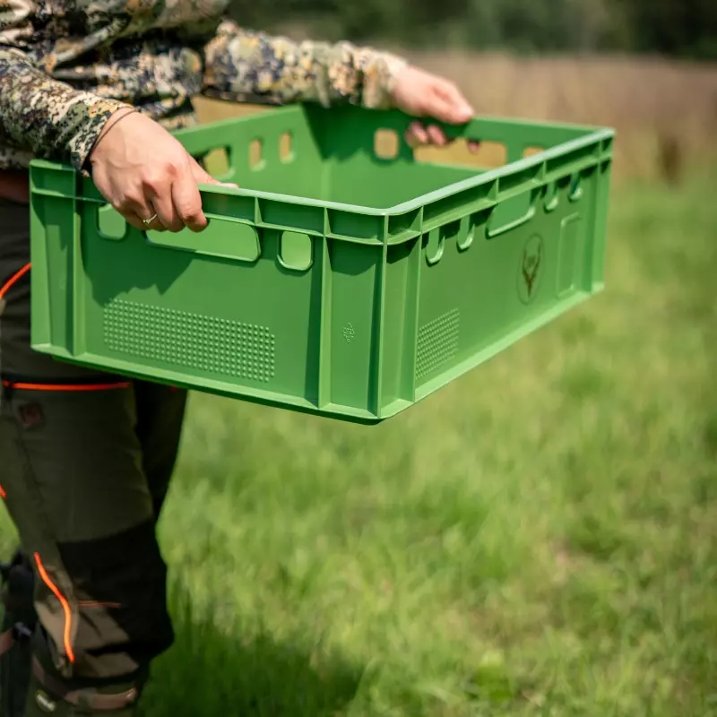 Auch bei der Zwischenlagerung im Kühlhaus oder beim Abgeben an einen Wildhändler bietet die Kiste die nötige Sicherheit und Sauberkeit.