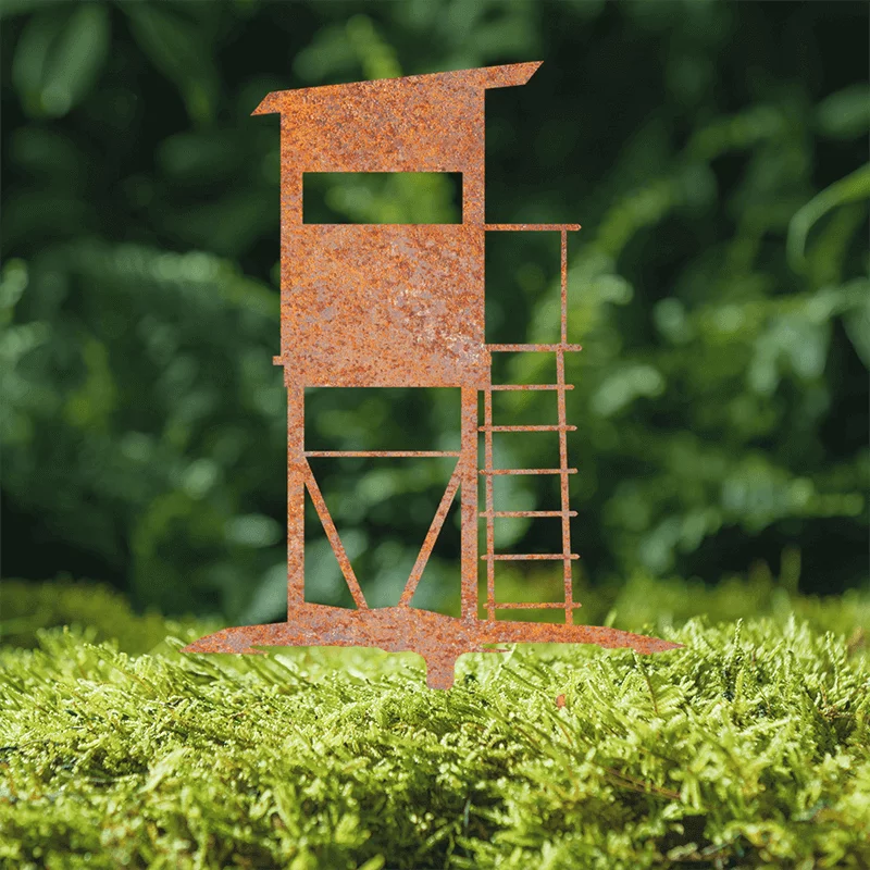 Suchen Sie nach einem einzigartigen Geschenk für Jäger oder einem stilvollen Akzent für Ihren Garten? Der Blumenstecker mit der Silhouette eines Hochsitzes hergestellt von Werkplatz ist genau das Richtige! Dieser aus rostendem Stahl gefertigte kleine Deko-Stecker ist nicht nur ein Blickfang in Blumentöpfen und Beeten, sondern auch eine perfekte Geschenkidee für jeden Anlass, sei es zum Geburtstag, Jagdschein, Hochzeit, Jubiläum - oder einfach so.