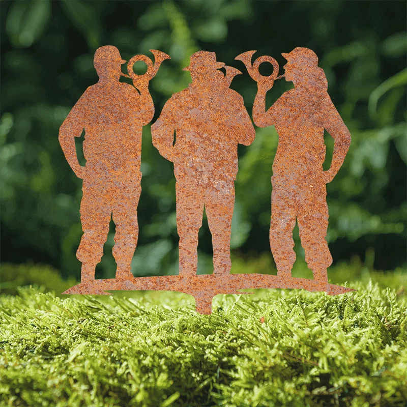 Verleihen Sie Ihrem Garten und Balkon das gewisse Extra mit dem kleinen Blumenstecker in Form einer Gruppe Jagdhornbläser