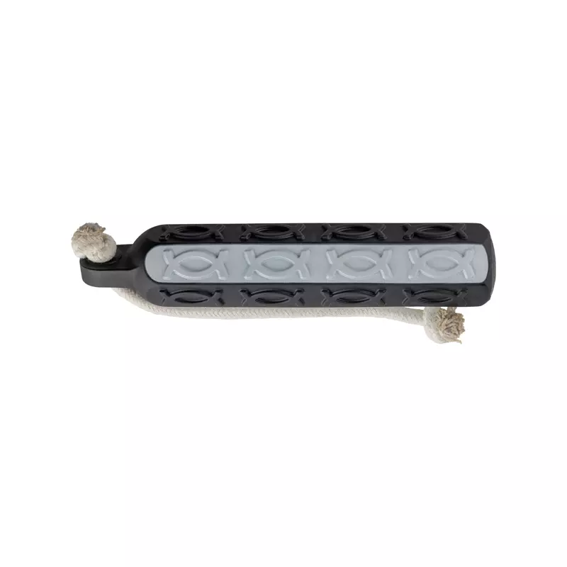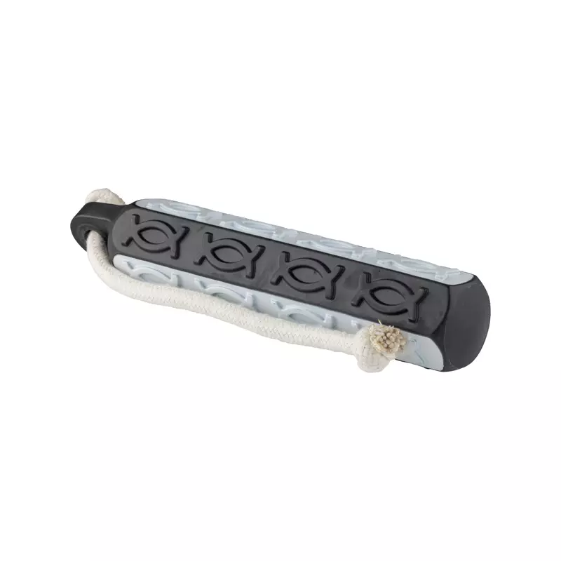 Durch die 6-eckige Form kann der Hund diesen immer gut greifen und halten. Weiterhin sorgt ein Reliefmuster für eine bessere Halteeigenschaft. Eine 8 mm starke Baumwollkordel ermöglicht es dem/der Hundeführer/in, den Dummy aus kurzer oder weiter Entfernung gezielt zu auszubringen.