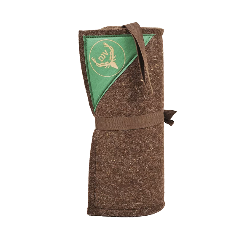 Das bequeme DJV-Sitzkissen aus Lodenfilz ist der ideale Begleiter für lange Ansitze und Wanderungen. Gefertigt von Hubertus Loden aus 13 mm dickem Nadelfilz aus 100 % Schafschurwolle, bietet es hervorragenden Schutz gegen Kälte und Feuchtigkeit und ist äußerst weich und gemütlich. Auf eine Ecke ist das DJV-Logo eingenäht.