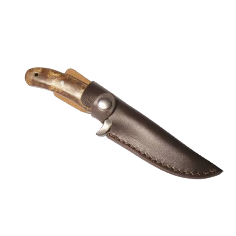 Das Magnum Elk Hunter wird mit Fangriemenöse und Gürtelscheide aus Leder mit Druckknopfsicherung geliefert.