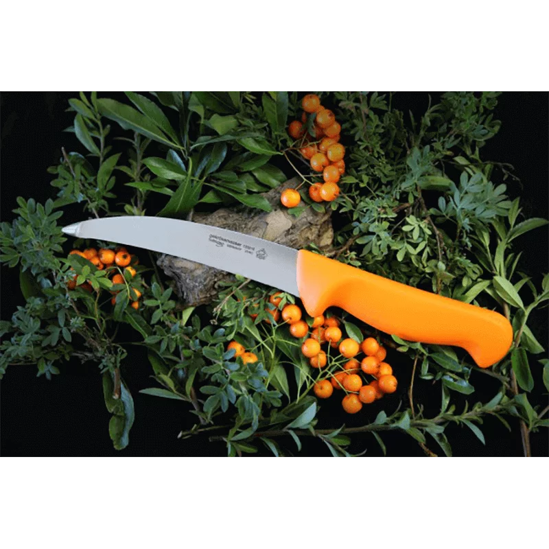 Das PUMA Gekrösemesser eignet sich aufgrund seiner abgerundeten Klingenspitze bestens zum Aufbrechen von Wild, da die Innereien nicht verletzt werden und das Wildbret somit nicht verunreinigt werden kann.
