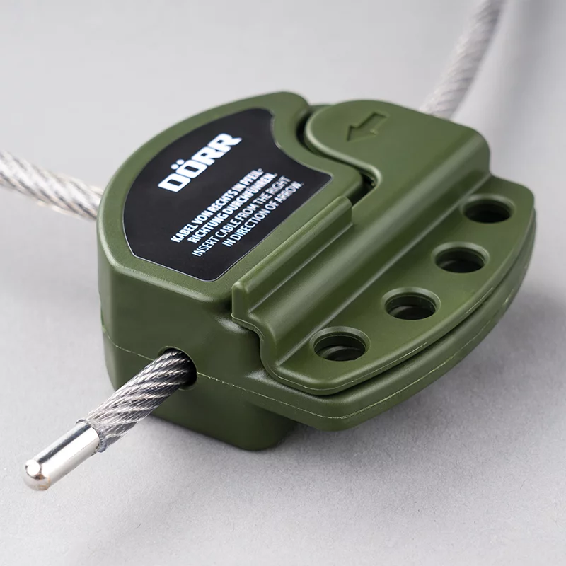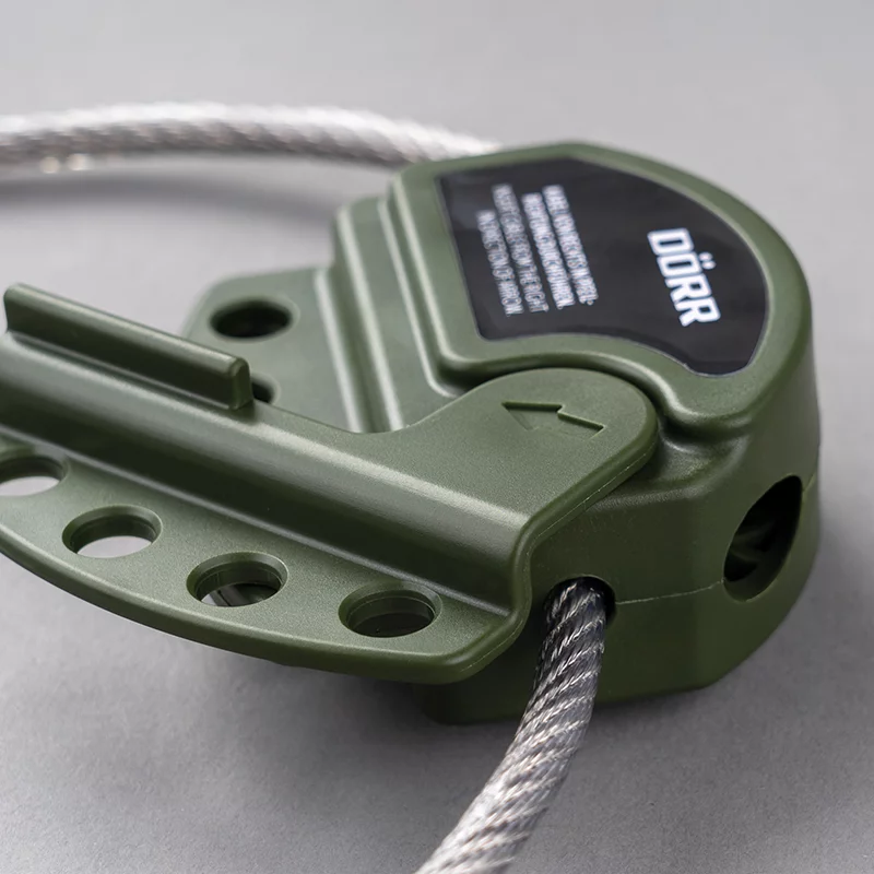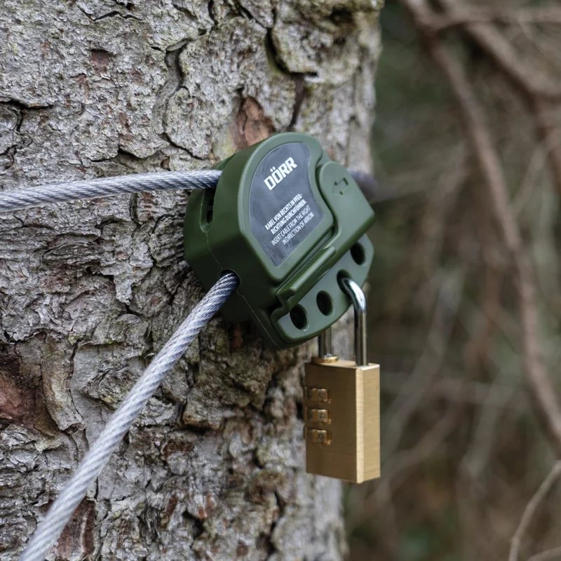 Universelles Kabelschloss für alle DÖRR SnapShot Wild- und Überwachungskameras und Kameras anderer Marken mit entsprechenden Ösen und Durchführmöglichkeiten, welches aus einem Sicherungskabel mit einem speziellen 4-Punkte Verriegelungssystem besteht. Diese Konstruktion ermöglicht es, das Kabelschloss in nahezu jeder Position unlösbar und gespannt anzubringen, um eine optimale Sicherung zu gewährleisten. Die Verriegelung des Kabelschlosses erfolgt über ein zusätzliches Vorhängeschloss (optional erhältlich). Somit kann man selbst entscheiden, ob ein Zahlenschloss oder ein Schloss mit Schlüssel verwenden werden soll. Wenn Sie noch kein Vorhängeschloss besitzen, empfehlen wir Ihnen das DÖRR Zahlenschloss um ein möglichst hohes Maß an Sicherheit zu gewährleisten.