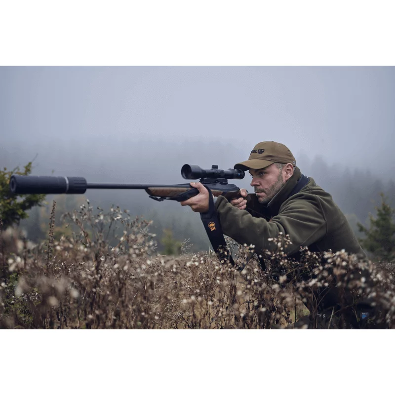 In Trageposition sorgt die 3 cm breite Öffnung des Sauenhammer Gewehrriemens für maximalen Komfort. Der Riemen liegt breit und satt auf der Schulter auf. Eine Anti-Rutsch Gummierung auf der Rückseite sorgt für zusätzlichen Halt bei geschulterter Büchse. Im Sommer sorgt die Öffnung im Gewehrriemen für eine bessere Belüftung und weniger Schweißbildung.