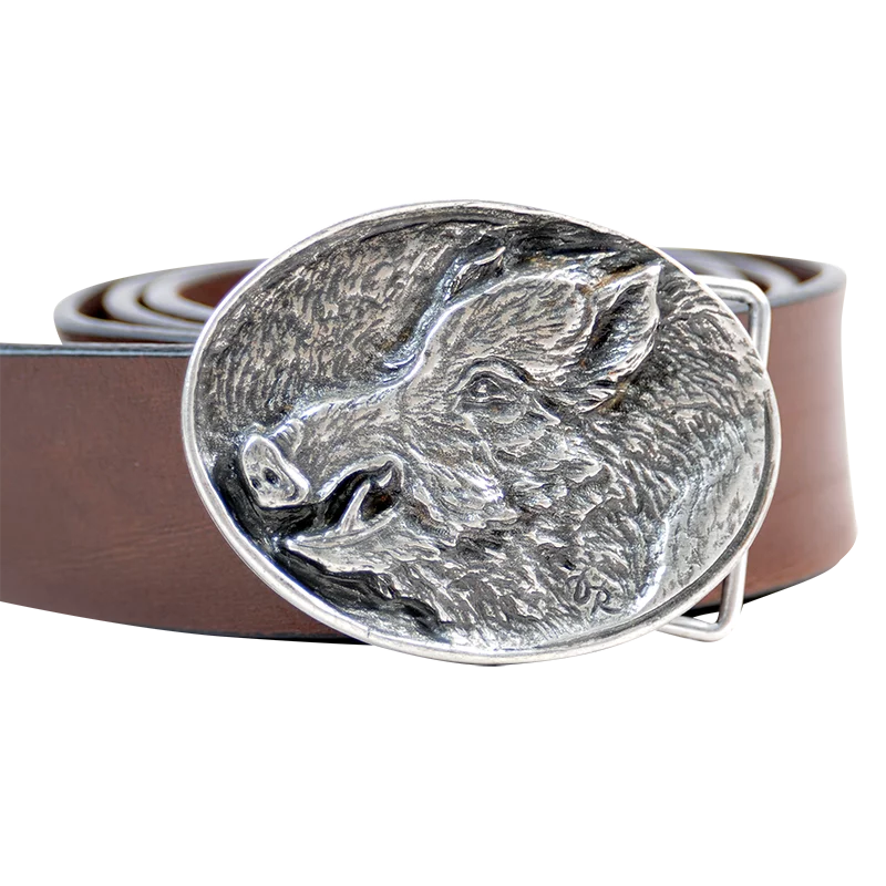 7,5 x 5,7 cm große massiv gegossene Metall-Gürtelschließe mit Wildschweinhaupt-Motiv. In Altmessing und Altsilber verfügbar. Für Gürtel bis 4 cm Breite. Der abgebildete Gürtel ist nicht im Lieferumfang enthalten!
