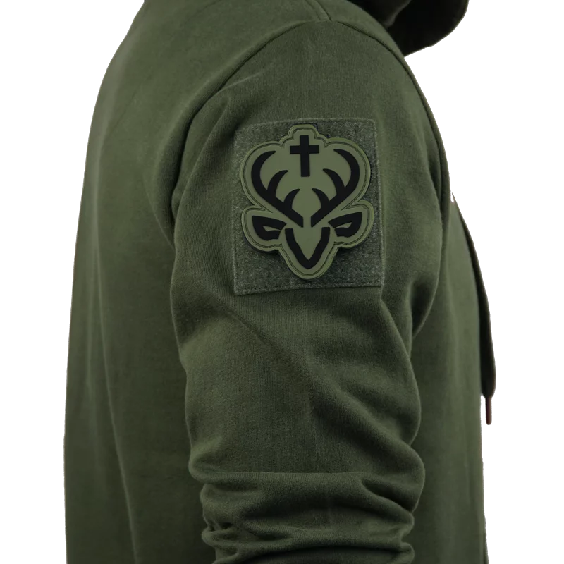 Dieser hochwertige Hoodie aus der 'Black Edition' Serie im typischen Olive-Farbton und mit besonders weichem Innenfleece besticht durch das große, schwarze Jagdstolz Logo auf der linken Brust, und mit dem zusätzlichen Jagdstolz Stick-Logo an Ärmel und der Kapuze zeigst du allen deine Leidenschaft für die Jagd. Er eignet sich sowohl für die Jagd als auch für die Freizeit, wo du ihn mit einer Jeans oder deinem favorisierten Freizeitlook perfekt kombinieren kannst. Als Neuerung wurde der Hoodie mit einer Patch-Applikation mit integriertem Jagdstolz Logo am oberen rechten Ärmel ergänzt, damit du deinen Style individuell gestalten kannst – ob mit dem Logo Patch von Jagdstolz oder jedem anderen Patch. Patches sind separat erhältlich.