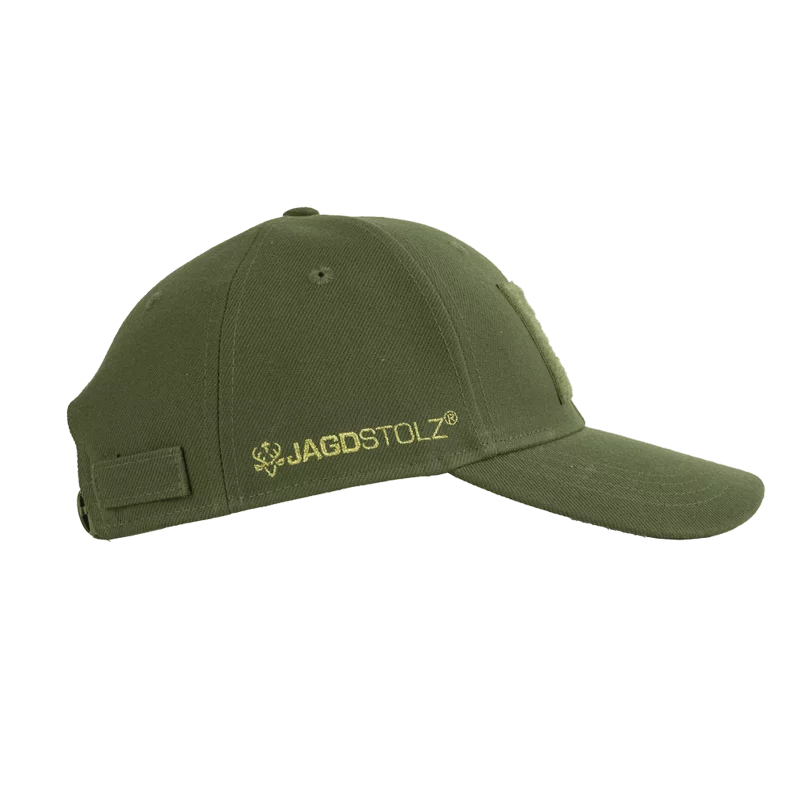 Diese Cap hat das Jagdstolz Logo in Gold auf beiden Seiten gestickt, eine Bruchlasche für deinen Erlegerbruch und eine Patch-Applikation mit eingestanztem Logo auf der Vorderseite.