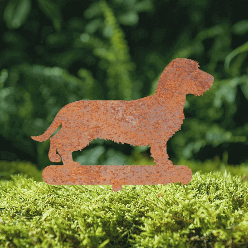 Suchen Sie nach einem einzigartigen Geschenk für Jäger oder einem stilvollen Akzent für Ihren Garten? Der Blumenstecker mit der Silhouette eines Rauhaardackels hergestellt von Werkplatz ist genau das Richtige! Dieser aus rostendem Stahl gefertigte kleine Deko-Stecker ist nicht nur ein Blickfang in Blumentöpfen und Beeten, sondern auch eine perfekte Geschenkidee für jeden Anlass, sei es zum Geburtstag, Jagdschein, Hochzeit, Jubiläum - oder einfach so.