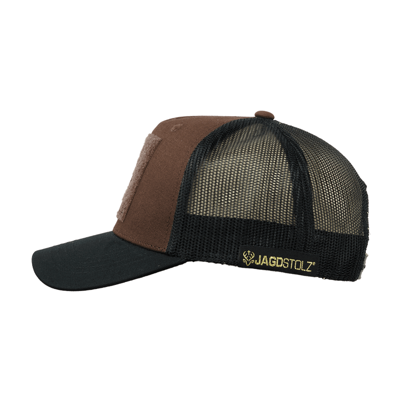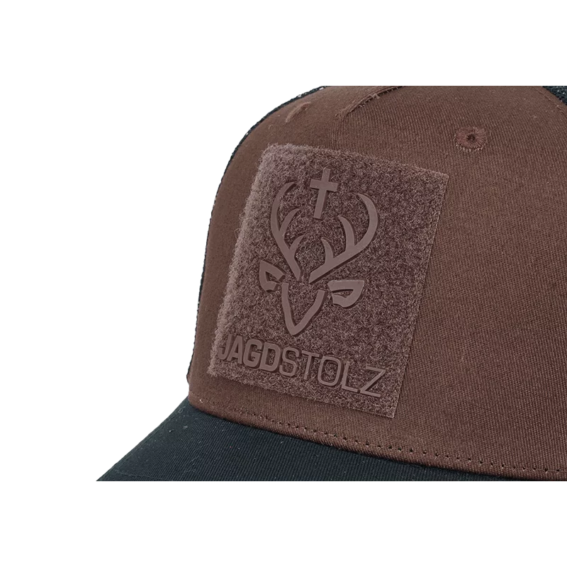 Die besondere Trucker Cap in den Farben Oliv, Oliv/Schwarz, Schwarz/Oliv und Braun/Schwarz von Jagdstolz zeigt mit, aber auch ohne Patches, die Zugehörigkeit zur Jagd!