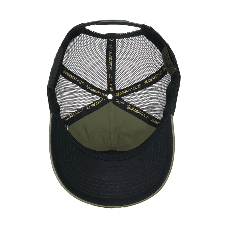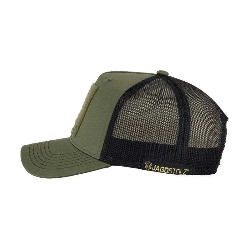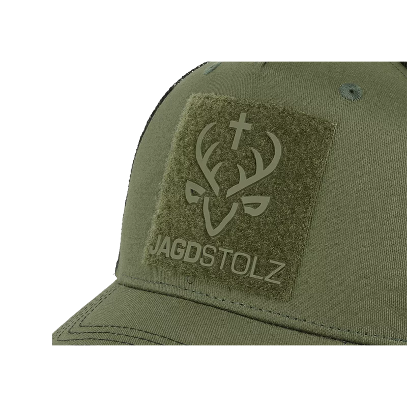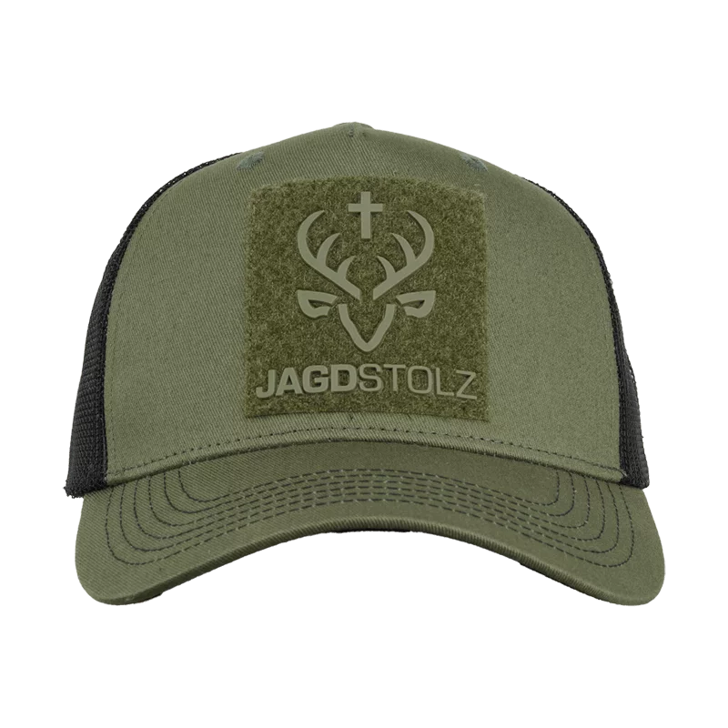 Die besondere Trucker Cap in den Farben Oliv, Oliv/Schwarz, Schwarz/Oliv und Braun/Schwarz von Jagdstolz zeigt mit, aber auch ohne Patches, die Zugehörigkeit zur Jagd!