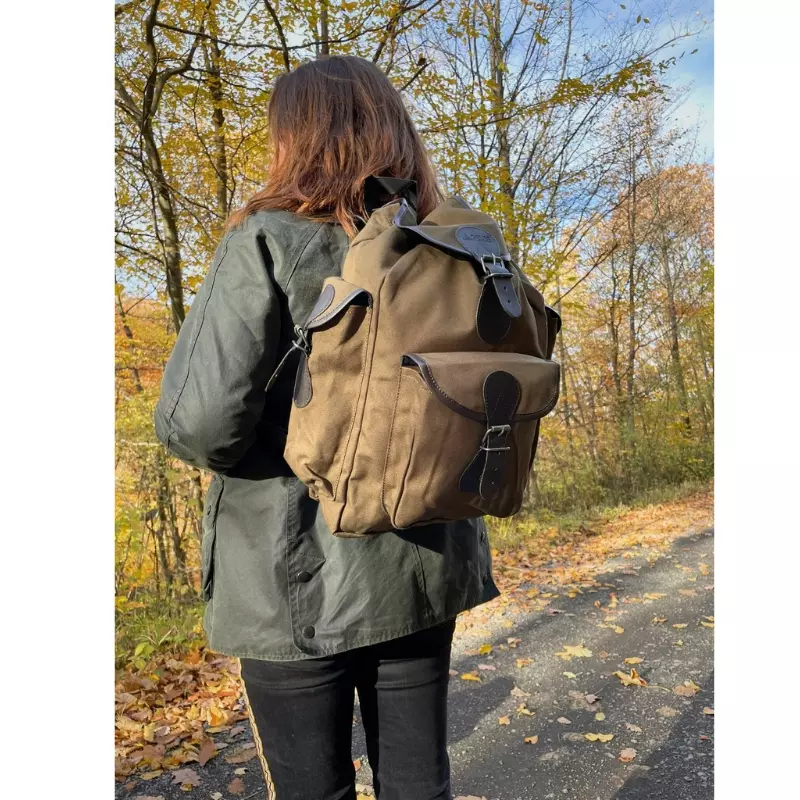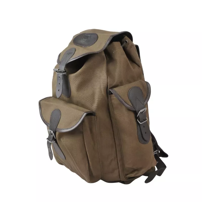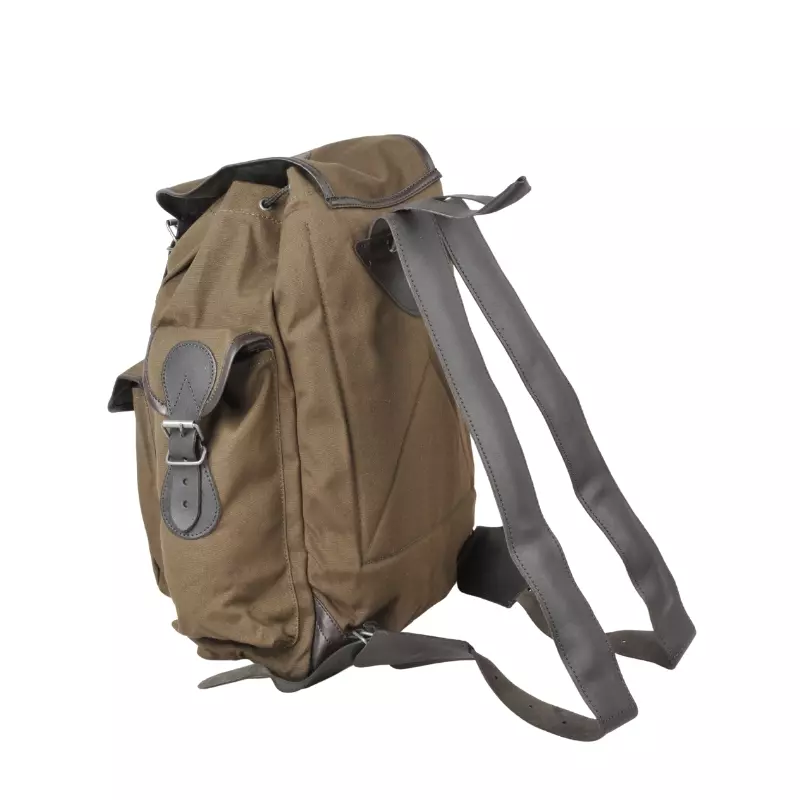 Für Bockansitz, Drückjagd, Pirsch oder eine kleine Wanderung eignet sich dieser dunkel-olive Rucksack mit dunkelbraunen Besätzen ideal und verbindet praktisches Jagddesign mit klassischer Optik.