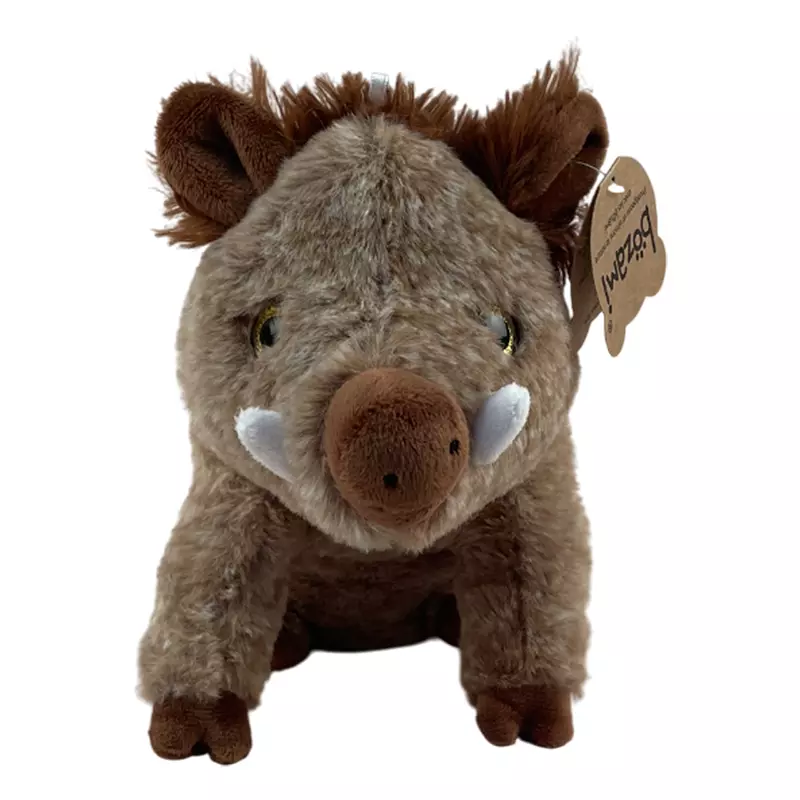 Sein plüschiges Äußeres lädt sofort zum Schmusen ein. Das Wildschwein hat niedliche Lauscher und ein naturgetreues Gebrech.