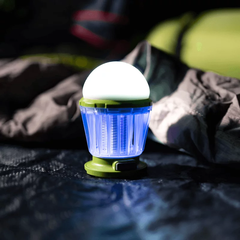 Die kompakte Insektenlampe kann sowohl im Innen- als auch im Außenbereich genutzt werden und ist daher vielseitig einsetzbar. Das strapazierfähige Kunststoffgehäuse ist regen- und spritzwasserfest und macht die Laterne zum optimalen Begleiter bei Ihren Outdoor-Aktivitäten. Mit dem ausklappbaren Doppel-Haken können Sie die Lampe einfach an Äste, Zeltstangen etc. aufhängen.