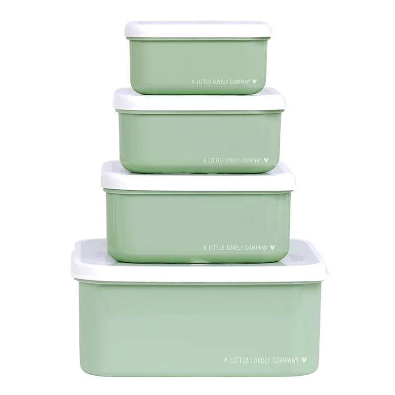 Die Lunchboxen von A Little Lovely Company sind ineinander stapelbar, um sie effizient aufzubewahren. Ob leckeres Pausenbrot oder Obst und Gemüse, so macht jeder Snack Spaß!