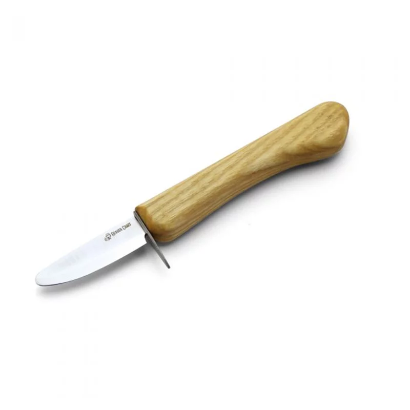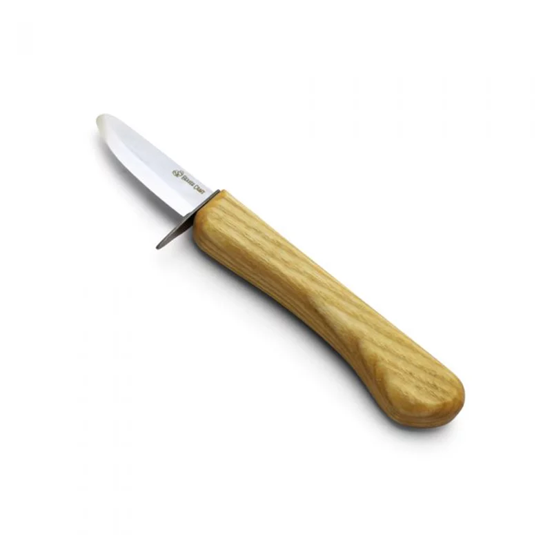 Die Klinge ist extra etwas kürzer als bei vielen anderen Schnitzmessern, so lässt sich besonders sicher und leichter arbeiten. Die abgerundete Klinge verhindert ein versehentliches Stechen, der Fingerschutz schützt vorm Abrutschen in die Klinge. Trotzdem ist das Messer sehr scharf und es lässt sich hervorragend damit schneiden.