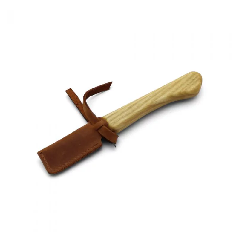 Das Kinder-Schnitzmesser mit Abrutschschutz und abgerundeter, kurzer Klinge überzeugt durch einen ergonomisch geformten Holzgriff, einen Fingerschutz und eine Schutzhülle.