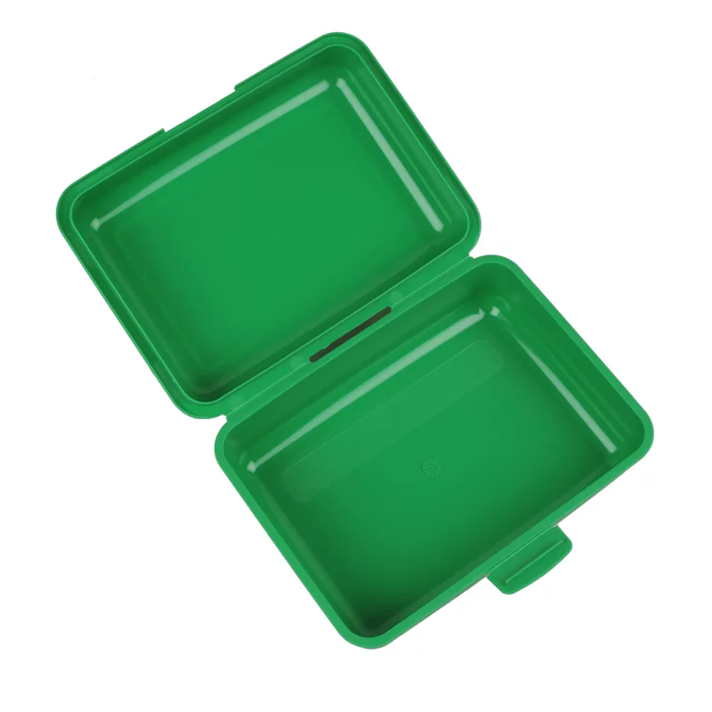 Sie findet in jedem Schulranzen oder Rucksack Platz. Der Deckel kann nicht verloren gehen, da er durch ein Filmscharnier mit dem Unterteil verbunden ist. Dank des bewährten Klickverschlusses ist sie auch für Kinderhände einfach zu öffnen und zu schließen.