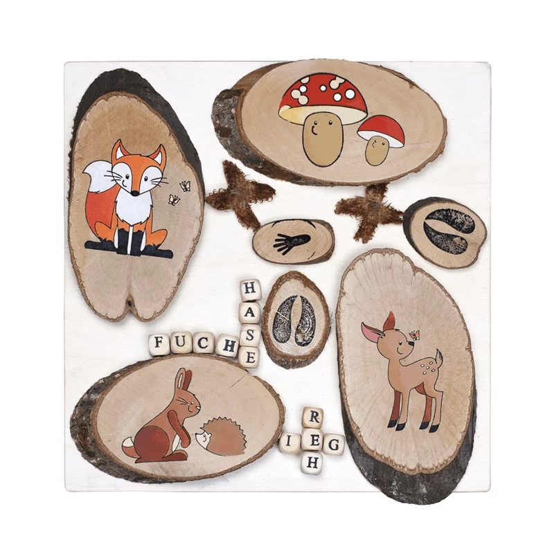 Die Baumscheiben können bemalt oder mit Brenneisen in Brandmaltechnik gestaltet werden. In der Bauecke werden die Scheiben zum naturnahen Bauen und Konstruieren benutzt.