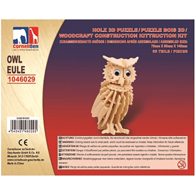 Aus den einzelnen Teilen des Puzzles setzt sich eine schöne Eule zusammen. Da das Holz unbehandelt ist, ist es auch leicht zu gestalten. Es kann leicht angemalt oder beklebt werden und bietet daher noch weitere Möglichkeiten dem Bastelspaß kein Ende zu setzen!