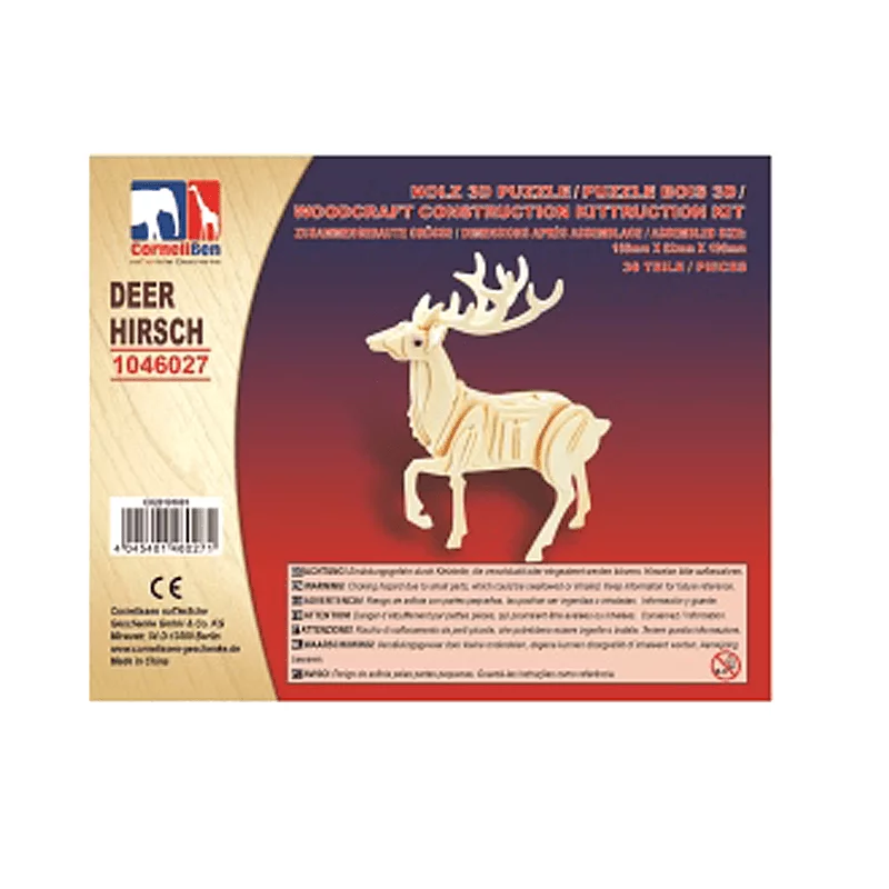 Der stattliche Hirsch als 3D Puzzle aus Holz zum Nachbauen.