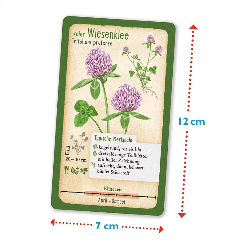 Diese Bestimmungskarten geben auf diese Fragen Antworten. Auf Vorder- und Rückseite wird anschaulich beschrieben, wann die Blütezeit der jeweiligen Pflanze ist, wie groß sie wird, was ihre Merkmale sind und ob sie zum Beispiel essbar ist. Ein kleiner Text klärt dann noch über kleine Sonderheiten auf, ob die Pflanze gepflückt werden darf oder woher sie ihren Namen hat.