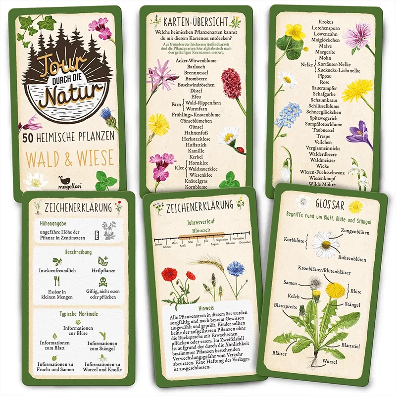 Viel Spaß auf dem nächsten Spaziergang mit den 'Tour durch die Natur - 50 heimische Pflanzen - Wald und Wiese' - Bestimmungskarten!