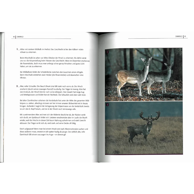 - Erkennen und Beurteilen von Schalenwild: Rehwild, Rotwild, Damwild, Muffelwild, Gamswild und Schwarzwild