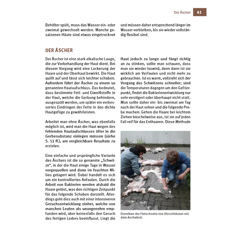 In der ausführlichen Einleitung wird auf weitere Gerbemethoden, auf die Gewinnung bzw. Beschaffung, Lagerung und Koservierung der Häute sowie auf die Hygiene genau eingegangen.
