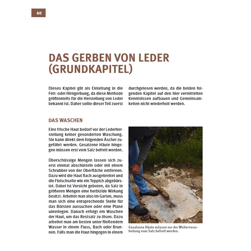 Auch die Verarbeitung der selbst gegerbten Häute und Felle, das Vernähen zu Drei-Finger-Handschuhen, Mokassins, Trapper- und Ötzi-Mützen, Schamanen-Hauben und Hausschuhen, zeigt dieses Buch mit vielen Schritt-für-Schritt-Erklärungen und hilfreichen Schablonen.