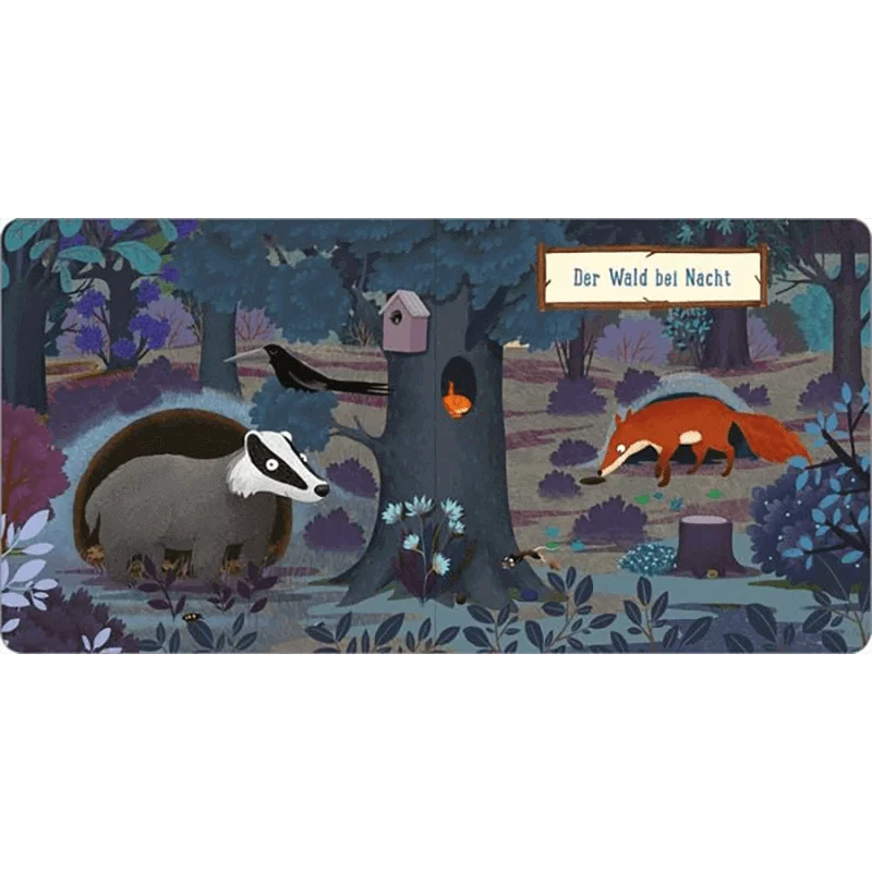 Besuche den kleinen Dachs im Wald und begleite ihn durch die Nacht. Hilf ihm beim Putzen und der Nahrungssuche und finde heraus, wo er wohnt. Wusstest du, dass Dachse am liebsten mit ihren Familien zusammen sind?