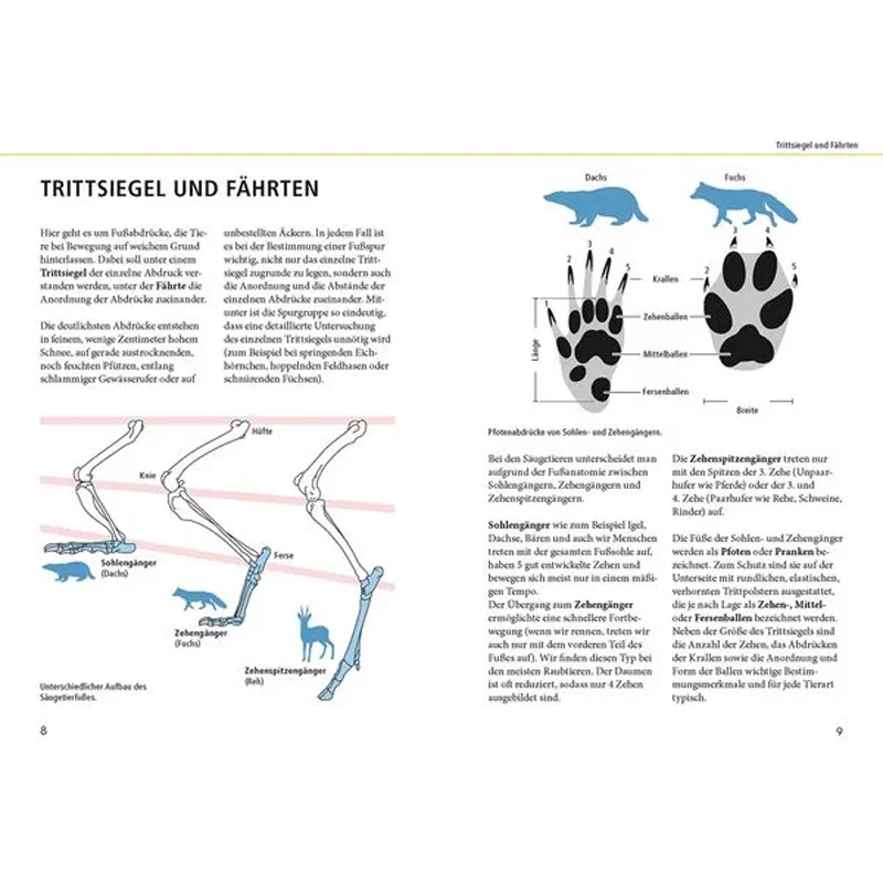 Jede Tierspur wird in ihrer tatsächlichen Größe abgebildet. Daneben sieht man jeweils den Spurenverlauf und andere Lebenszeichen wie Fraßspuren, Losungen oder Abriebe an Bäumen. Fotos zeigen jedes Tier im Porträt und in seinem Lebensraum. Ein praktischer Naturführer für alle, die mehr über das geheime Leben unserer Wildtiere wissen möchten.