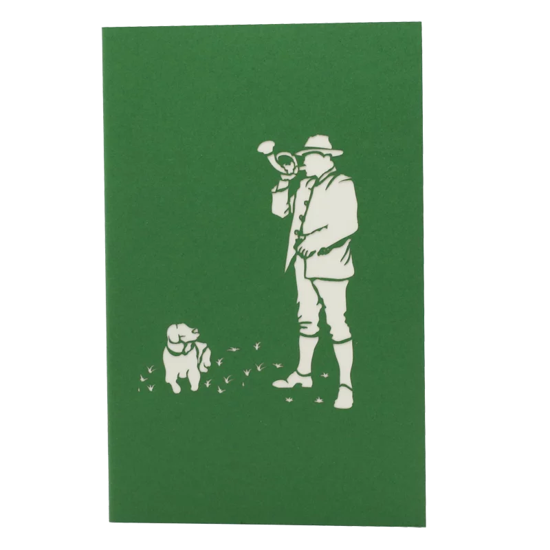 Pop-up-Karten: Grußkarten, die im Kopf bleiben Handgemachten Pop-Up Karten führen den Zuschauer beim Öffnen in ihre Welt. Sie erzählen kleine Geschichten, öffnen Herzen und bleiben im Kopf – auch lange nachdem der eigentliche Anlass schon vorbei ist. Papierkunst mit Wow-Effekt! Zwei Jagdhunde liegen ab und schauen ausmerksam und neugierig, was als nächstes passiert. Wird die Karte geöffnet, gehen zwei Jagdhunde auf die Pirsch und stöbern einen Fasan auf. Ob zur Jägerprüfung, zur Jagdhund-Prüfung, zu Weihnachten, zum Geburtstag, als Einladung oder ein 'Ich denk an Dich', die Pop-up-Karte ist einfach ein wunderschöner Gruß und macht viel Freude. Für den besonderen Anlass oder einen besonderen Menschen. Pop-up-Klappkarten entfalten ihr einzigartiges Design beim Öffnen der Karte und verzaubern den Betrachter mit einer filigranen 3D-Optik. Format: 17 x 11 cm Außenfarbe: grün Innenfarbe: creme Lieferumfang: Pop-Up Karte mit passendem Versandumschlag in Celluloid-Verpackung Hersteller:design3DkartenEnzianstr. 968309 MannheimDeutschlandinfo@design3dkarten.de