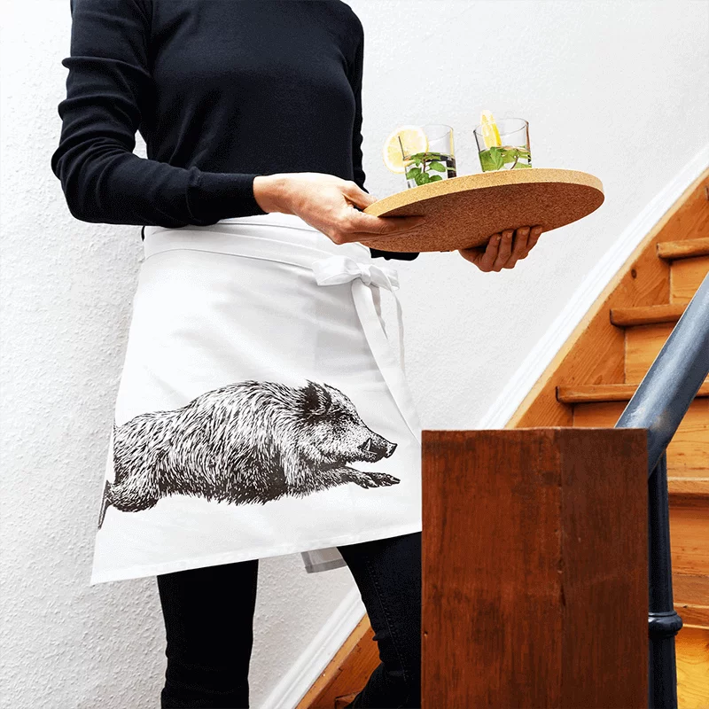 Mit einer praktischen Länge von 45 cm ist sie ideal für die Küchenarbeit zu Hause, die Servicearbeit in der Gastronomie oder das stilvolle Servieren am Familientisch. Die liebevollen Wild-Motive bringen einen Hauch von Wald und Natur in Ihren Alltag und macht die Schürze zu einem echten Blickfang.