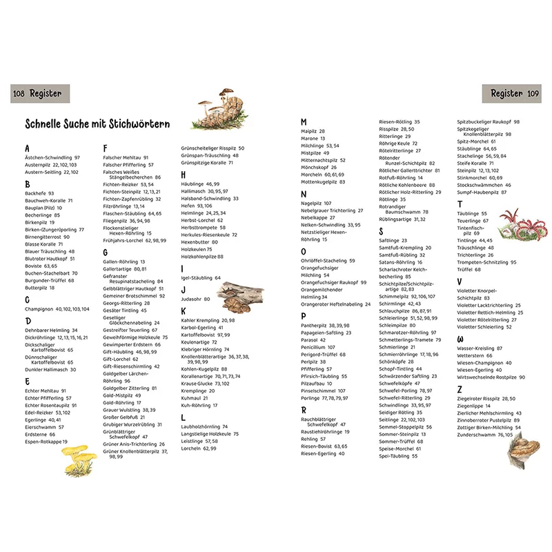 Naturgetreu: Die Kapiteleinteilung nach Wuchsformen und die Farbzeichnungen helfen, Pilze zu finden und richtig zu bestimmen.