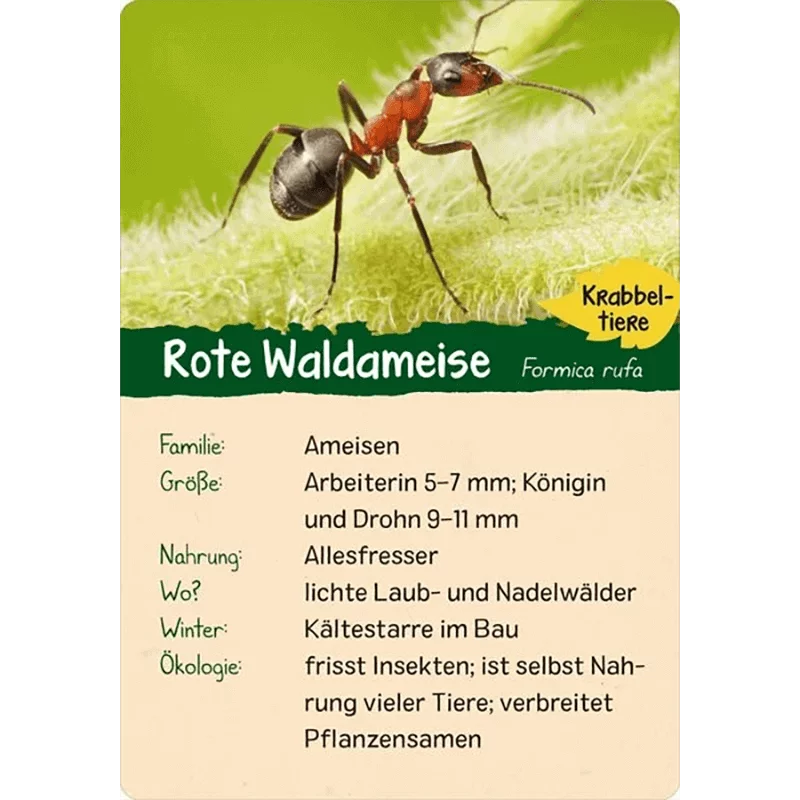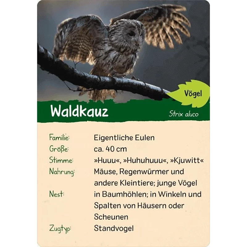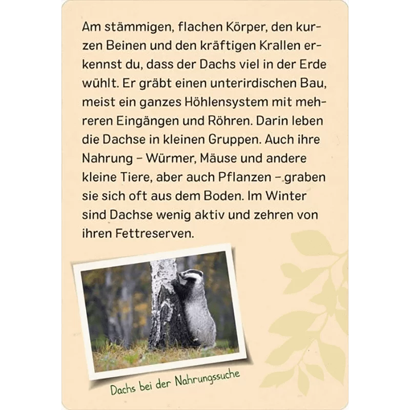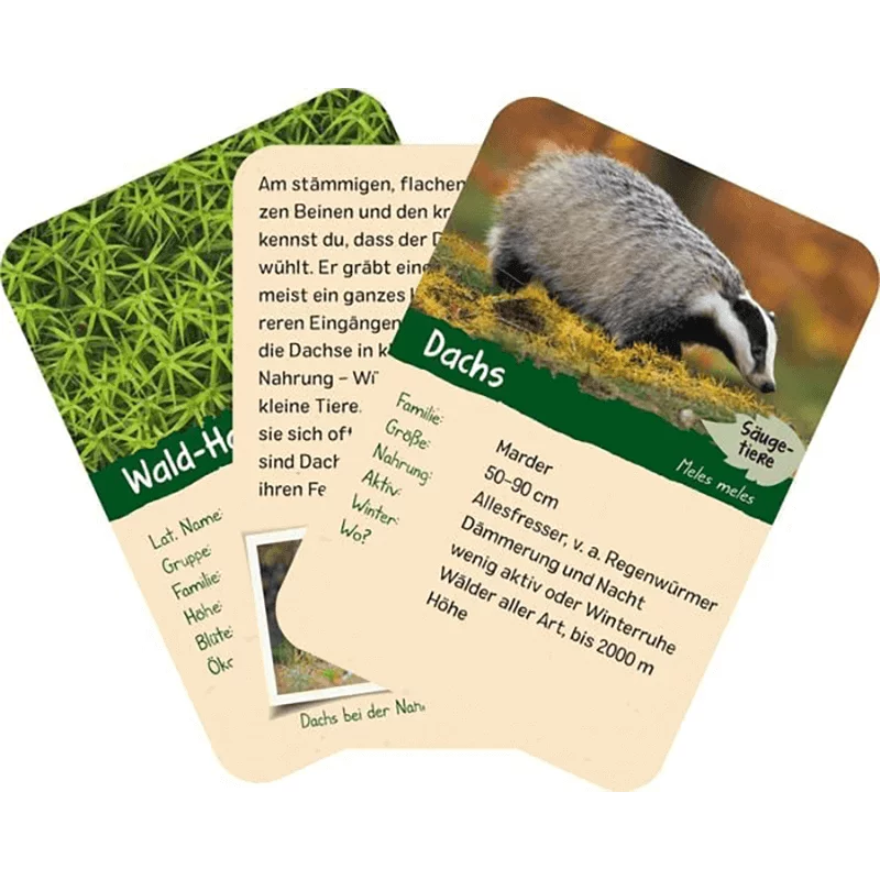 Jede Karte ist beidseitig bedruckt und auch auf der Rückseite gibt es schöne Funfacts mit hochwertigen und lustigen Fotos. Auf langen Waldspaziergängen könnt Ihr die Natur spielerisch entdecken und ihre Bewohner bestimmen.