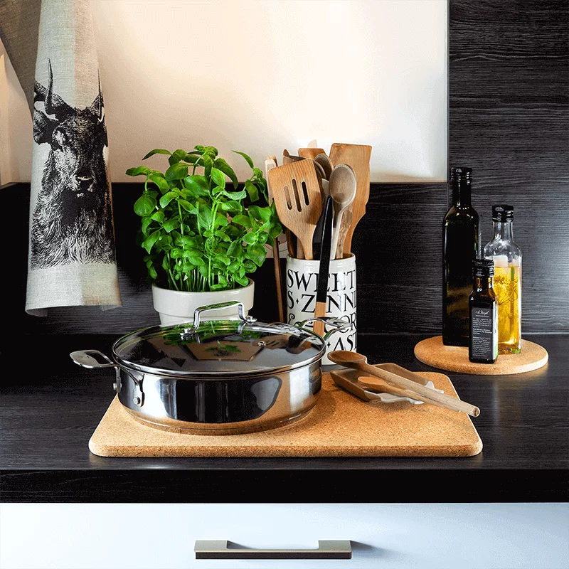 Er eignet sich gut als Unterlage für heiße Töpfe oder Pfannen, als stilvolles Tablett, um Snacks oder Getränke zu servieren oder einfach als schönes Element in der Küche.