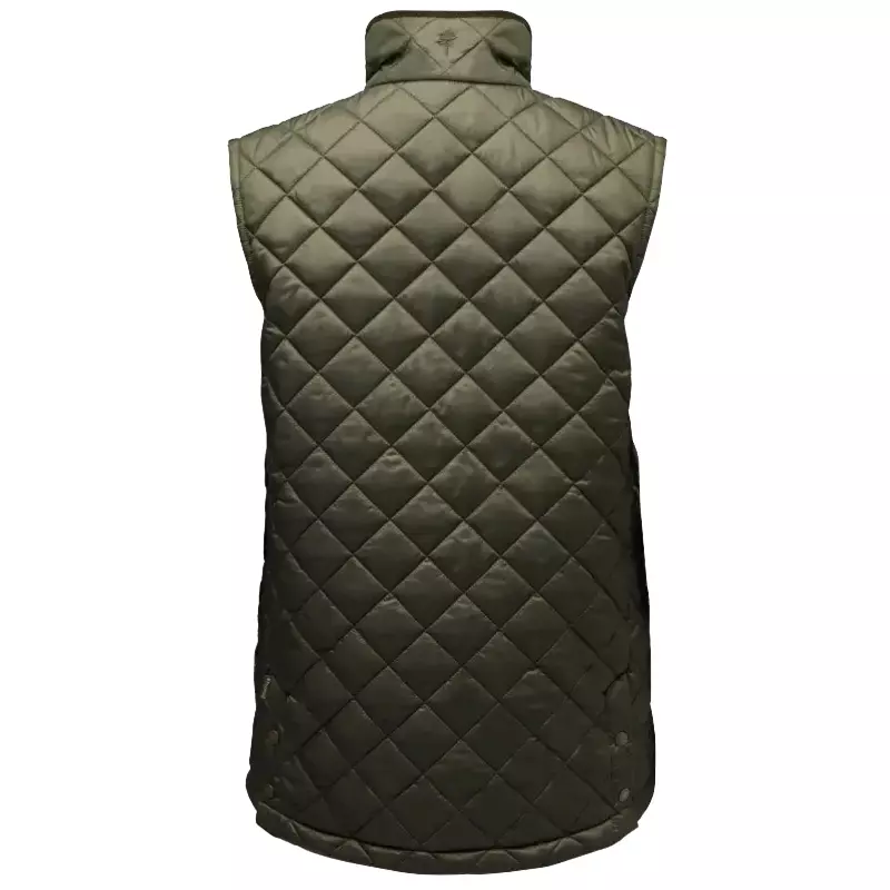 Die Steppweste ist winddicht und mit einer PFC-freien, wasserabweisenden Imprägnierung versehen, die leichten Wetterschutz bietet. Die vorderen Pattentaschen bieten Platz für Munition, eine Innentasche mit Reißverschluss sichert Wertsachen. Druckknöpfe am Rücken ermöglichen eine Erweiterung des Saums für zusätzlichen Komfort im Sitzen.