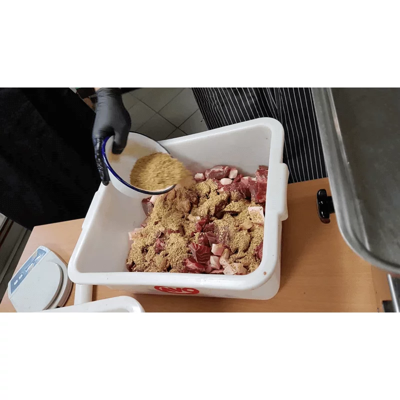 Wilder Tipp: Diese Würzmischung kann auch zur Herstellung von pikantem Hackfleisch oder scharfen Frikadellen verwendet werden. Die Zugabe von 42g-45g pro kg Masse ist identisch.