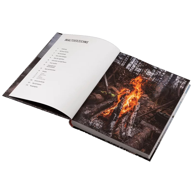 'Kochen mit Feuer' versammelt rund 120 Rezepte mit Fleisch, Fisch, Geflügel, aber auch viele vegetarische Gerichte und sogar Brote, Pizzen, Pfannkuchen, Nachtisch und Snacks gelingen über dem Feuer. Das Buch zeigt, wie man ein Lagerfeuer vorbereitet und entzündet, welche Garmethoden es gibt, welches Zubehör nützlich ist und was man sonst noch wissen sollte.