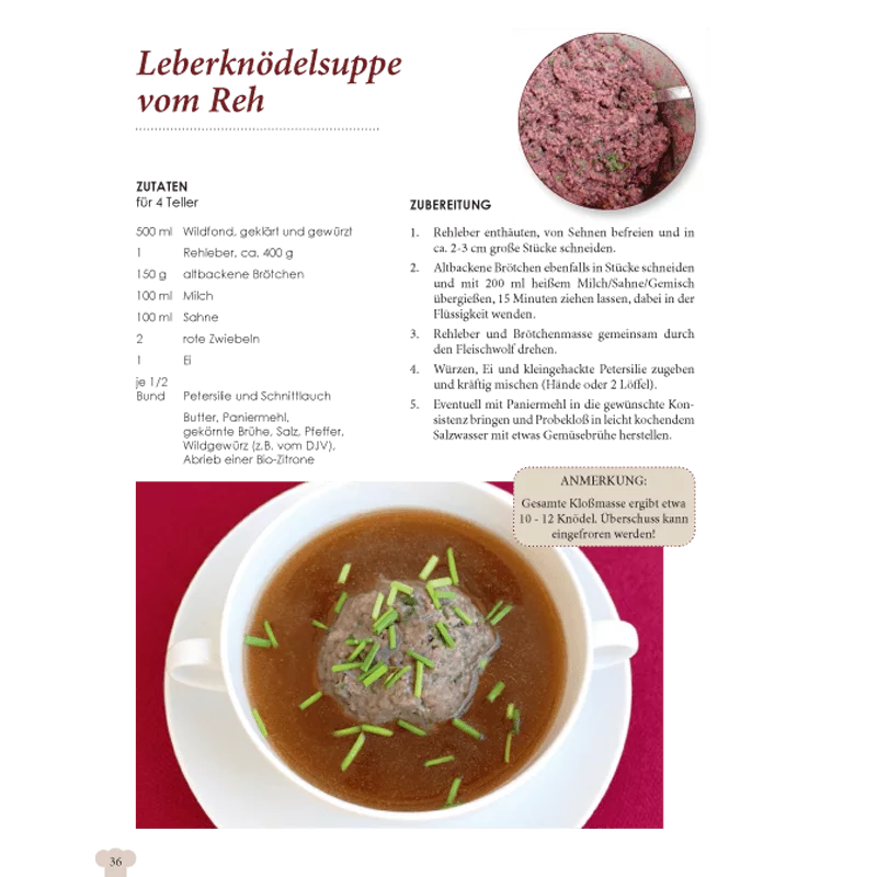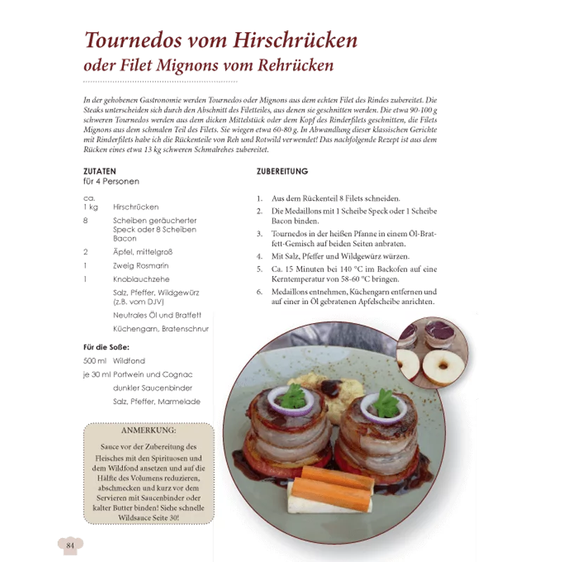 Auf 172 Seiten enthält die Saarländische Jägerküche II über 100 Rezepte für Suppen, Vorspeisen, Hauptspeisen und Nachspeisen zu Wildgerichten. Der Schwerpunkt liegt auf den Rezepten für Schalenwild wie Reh, Schwarzwild und Rot- und Damwild. Auch Hase, Kaninchen, Fasan und Ringeltaube sind vertreten!