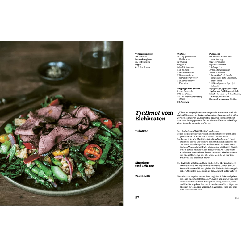 Wildfleisch stellt eine gesunde, umweltfreundliche und nachhaltige Ernährung dar. In diesem Kochbuch wird Schritt für Schritt erklärt wie die Gerichte zubereitet werden und vor allem - wie sie gejagt worden sind. Hier geht es wirklich um das Lebensmittel, dass aus dem Wald auf den Tisch kommt. Die beiden Autoren, der Koch Mikael Einarsson und der Jäger Hubbe Lemon, beschreiben ihre Passion die Jagd als etwas 'Urwüchsiges, Ursprüngliches' und verfolgen sehr klar das Ziel 'Je besser der Koch, desto besser der Jäger'. Durch die optimale Verwertung von gut erlegtem Wildfleisch, müsse einfach weniger unnötig durch den Fleischwolf gezogen werden und das Endprodukt aus der ehrlichen Jagd so mehr gewertschätzt werden. Das Kochbuch überzeugt auch durch seine fantastischen Aufnahmen, die nicht in Szene gesetzten Momente der beiden Jäger und den rustikal, aber äußerst ansprechend angerichteten Speisen. Außerdem kann hier jeder noch etwas lernen! Zu jeder Kategorie Wild gibt es Steckbriefe, die die Ökologie und Biologie des Tieres beinhalten sowieso die Jagdzeit in Schweden, Jagdformen, welche Hunde für das jeweilige Stück gut einsetzbar sind und welche Waffen zu gebrauchen sind. In diesem Kochbuch wird an alles und alle gedacht. Es ist für Jäger, aber auch Nicht-Jäger geeignet, die die Natur lieben und schätzen und von und mit ihr leben möchten.